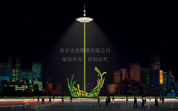 高桿燈不僅可以照明,如果給它搭配一點(diǎn)雕塑,將在寂靜的夜晚增添許多色彩。